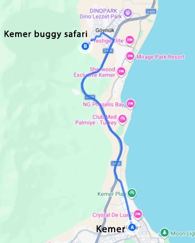 Distance:The distance from Kemer to the buggy safari base is 18 km.