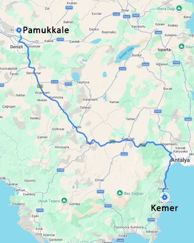 Odległość:Pamukkale znajduje się 272 km od centrum Kemeru.